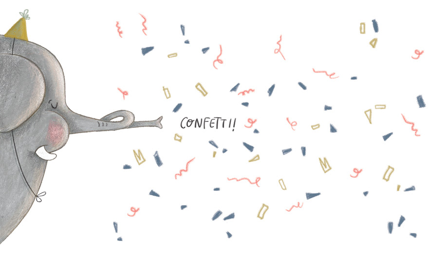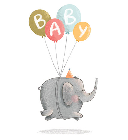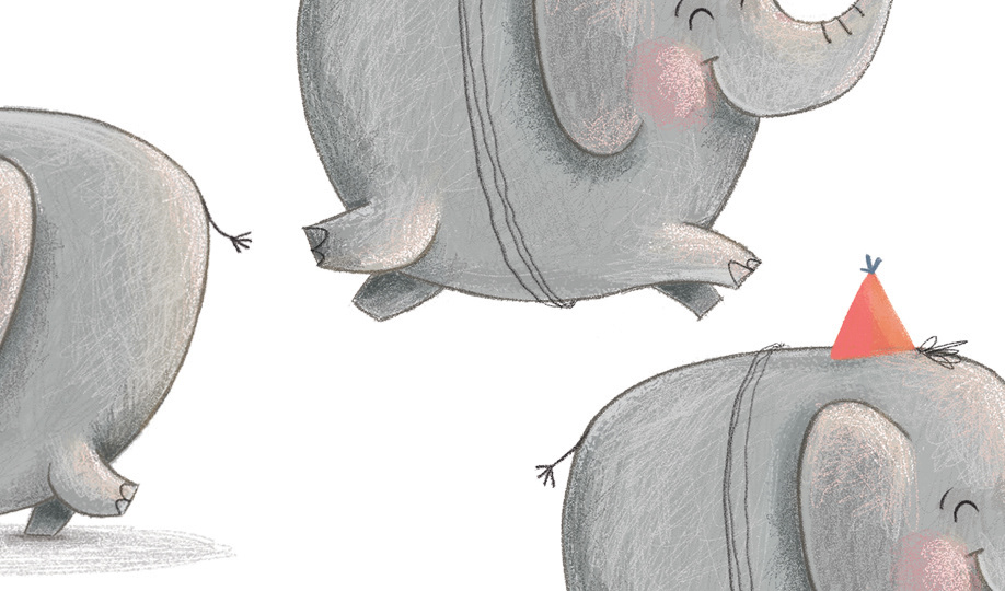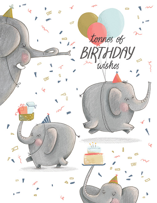 Elephant illustrations for various greeting cards